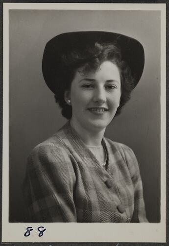 Photographic portrait of Miss Michala Liddell, US Censor Staff, on a visit to the Kodak factory at Abbotsford.