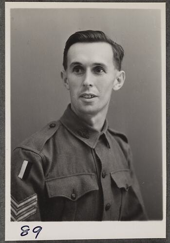 Photographic portrait of Sergeant Linsell of Abbotsford on a wartime visit to the Kodak factory at Abbotsford.