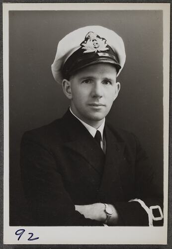 Photographic portrait of Sub-Lieutenant Bill McCarthy of Abbotsford on a visit to the Kodak factory at Abbotsford.