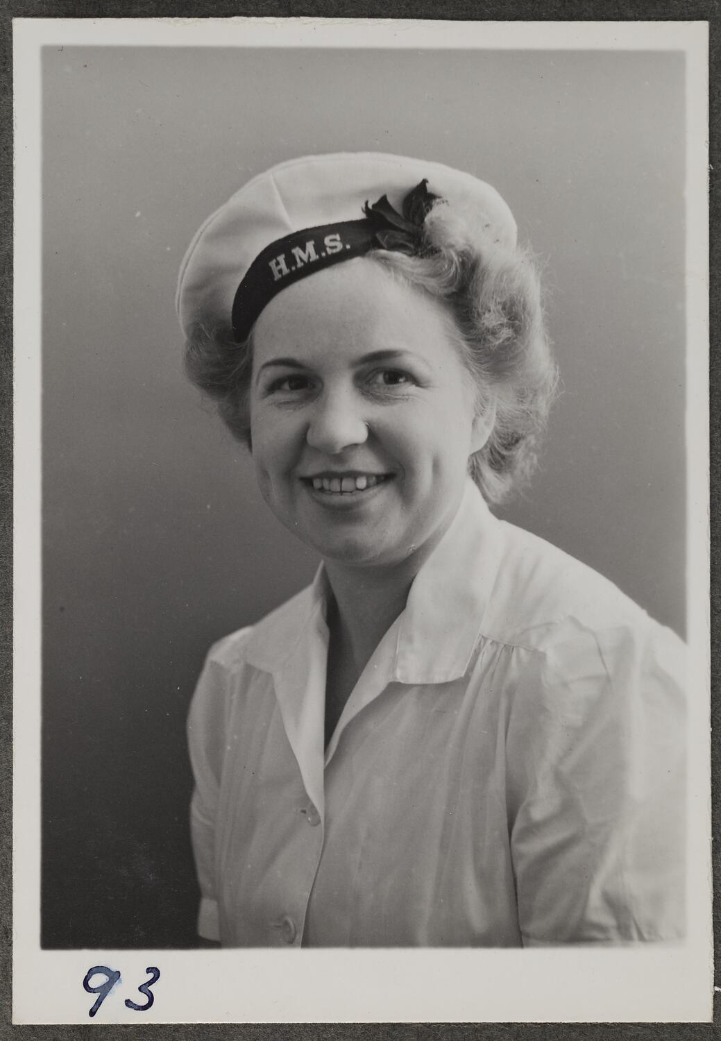 Portrait of woman in naval uniform.