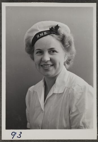 Photographic portrait of Wren Betty McCrow, Women's Royal Naval Service (WRNS), UK, on a visit to the Kodak factory at Abbotsford.