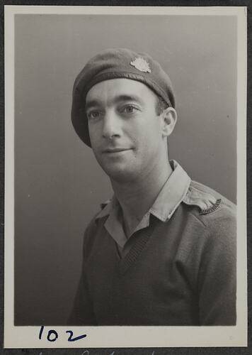 This is one of many portraits in an album of military and naval personnel who visited the Kodak Australasia Pty Ltd factory during World War II, 1939-1945.