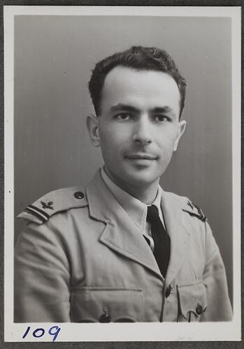 This is one of many portraits in an album of military and naval personnel who visited the Kodak Australasia Pty Ltd factory during World War II, 1939-1945.