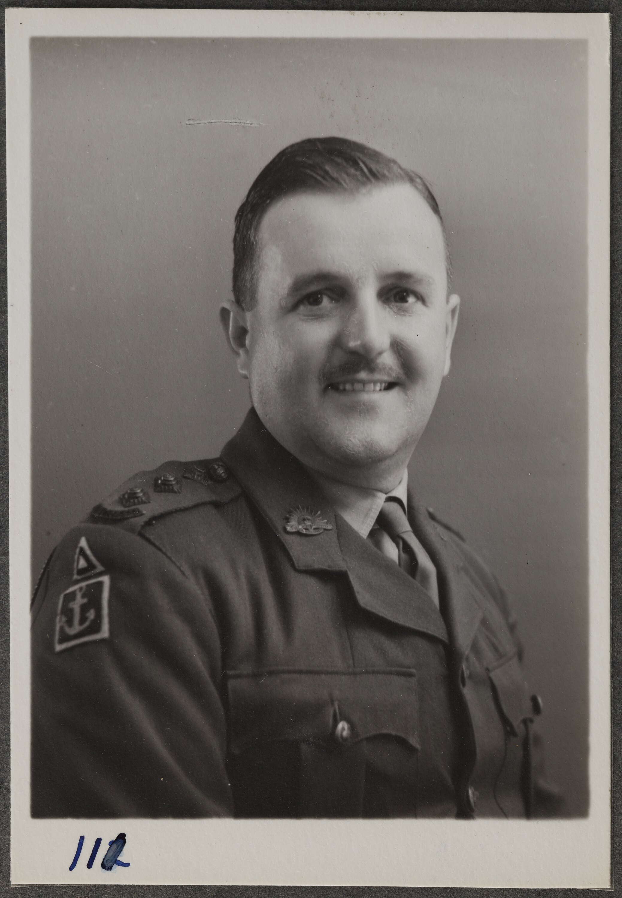 This is one of many portraits in an album of military and naval personnel who visited the Kodak Australasia Pty Ltd factory during World War II, 1939-1945.