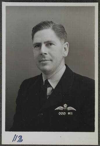 This is one of many portraits in an album of military and naval personnel who visited the Kodak Australasia Pty Ltd factory during World War II, 1939-1945.
