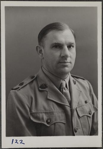 This is one of many portraits in an album of military and naval personnel who visited the Kodak Australasia Pty Ltd factory during World War II, 1939-1945.