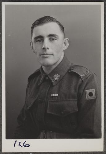 Photographic portrait of Private Viv Richardson of Abbotsford on a wartime visit to the Kodak factory at Abbotsford.