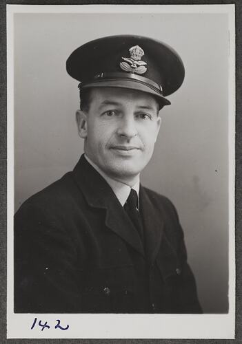This is one of many portraits in an album of military and naval personnel who visited the Kodak Australasia Pty Ltd factory during World War II, 1939-1945.