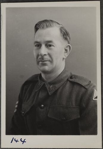 This is one of many portraits in an album of military and naval personnel who visited the Kodak Australasia Pty Ltd factory during World War II, 1939-1945.