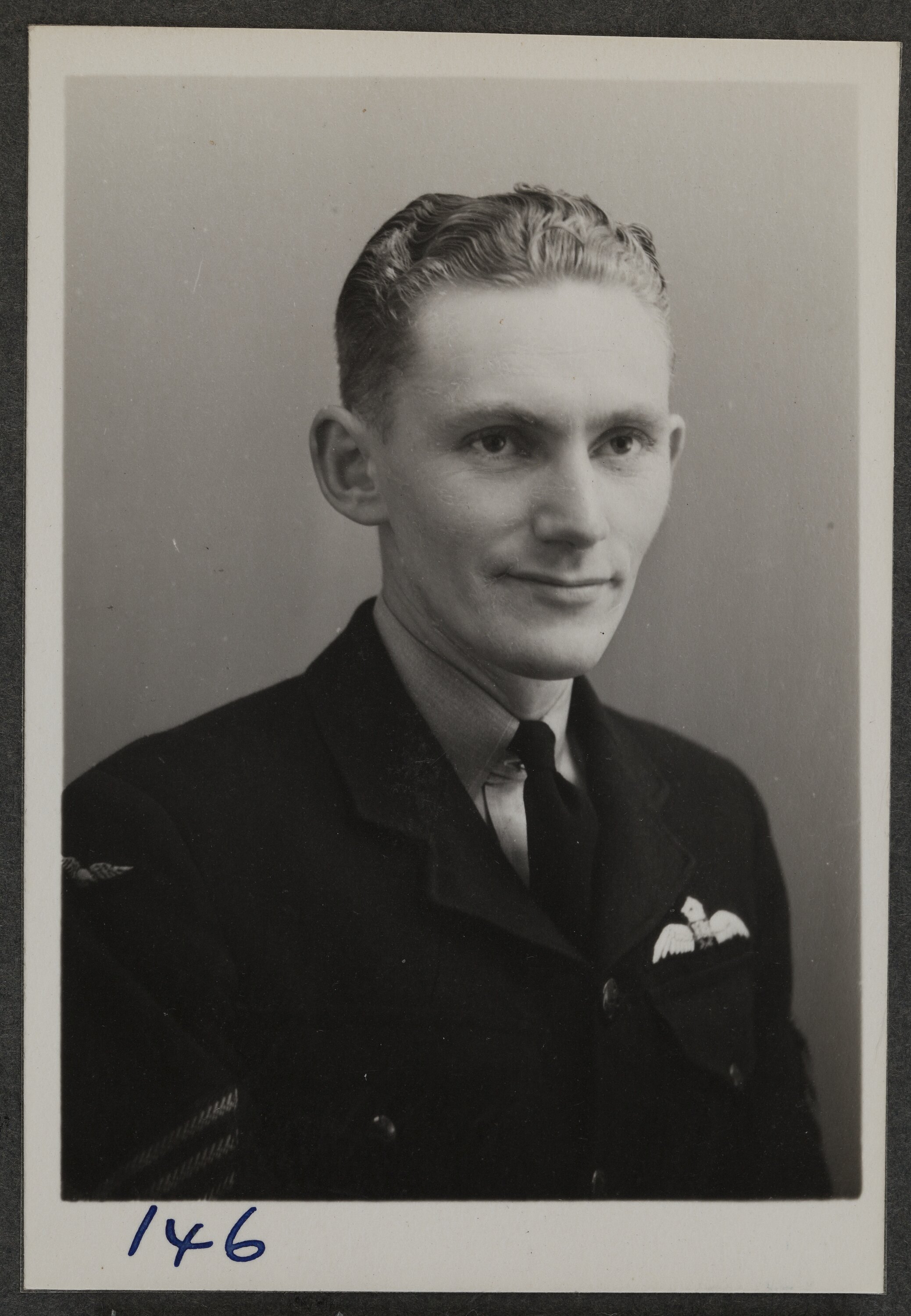 This is one of many portraits in an album of military and naval personnel who visited the Kodak Australasia Pty Ltd factory during World War II, 1939-1945.