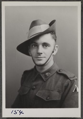 Photographic portrait of Private W. Wain of Abbotsford on a wartime visit to the Kodak factory at Abbotsford.