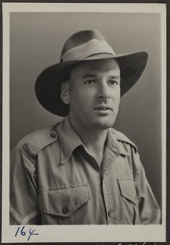 This is one of many portraits in an album of military and naval personnel who visited the Kodak Australasia Pty Ltd factory during World War II, 1939-1945.