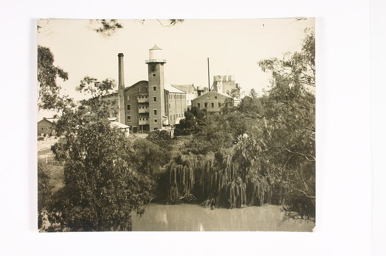 This photograph was published in the Australasian Photographic Review January 1915 p.48. It also appears Punch 6 April 1916 p.31. Note that a copy of this photo appears in an album (yet to be registered) which has a (probably incorrect) caption of 1928. Ed Wood & John Mitcham, former Kodak executives, have also dated this photograph to between 1900 and 1930 because the second chimney that was built around the 1930s, does not appear in the image. The original chimney, which was removed by 1955, is still intact. -