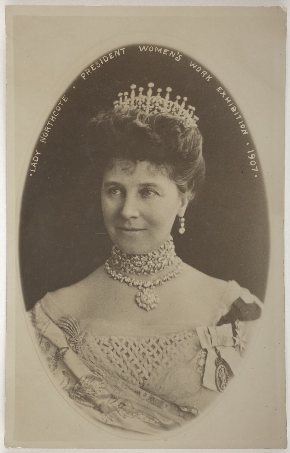 Postcard with a photographic portrait of Lady Northcote, President of the Women's Work Exhibition, 1907. This postcard, a souvenir of the Women's Work Exhibition held at the Exhibition Building from 23 October to 30 November 1907, was posted from the inner-Melbourne suburb Northcote in 1907. The writer of the postcard, F.M., states she is going to reclaim it from the addressee when she returns home to South Australia.