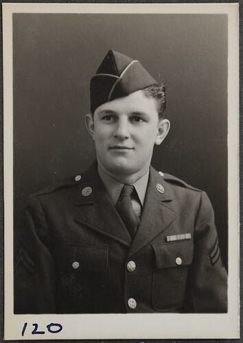 This is one of many portraits in an album of military and naval personnel who visited the Kodak Australasia Pty Ltd factory during World War II, 1939-1945.