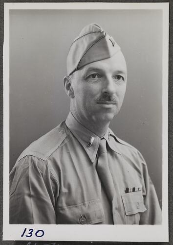 This is one of many portraits in an album of military and naval personnel who visited the Kodak Australasia Pty Ltd factory during World War II, 1939-1945.