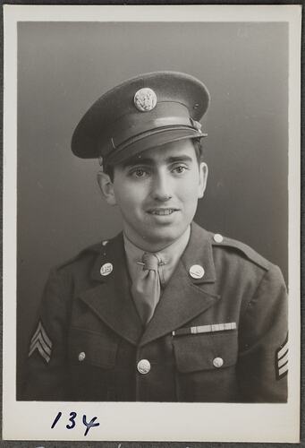 Photographic portrait of Sergeant Don Murray on a visit to the Kodak factory at Abbotsford.