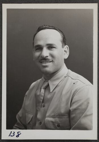 Photographic portrait of Sergeant Harold Newman on a visit to the Kodak factory at Abbotsford.