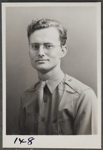 This is one of many portraits in an album of military and naval personnel who visited the Kodak Australasia Pty Ltd factory during World War II, 1939-1945.