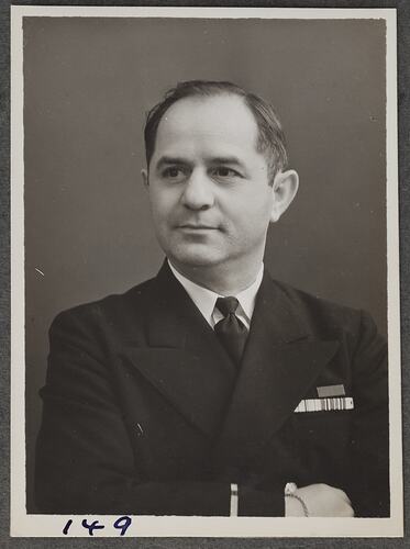 This is one of many portraits in an album of military and naval personnel who visited the Kodak Australasia Pty Ltd factory during World War II, 1939-1945.
