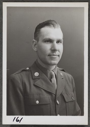 This is one of many portraits in an album of military and naval personnel who visited the Kodak Australasia Pty Ltd factory during World War II, 1939-1945.