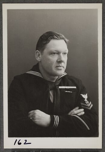 Photographic portrait of Petty Officer G.W. Simpson Junior, Mail Branch, United States Navy, on a visit to the Kodak factory at Abbotsford.