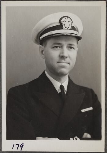 Photographic portrait of Lieutenant Commander Venerka, United States Navy on a visit to the Kodak factory at Abbotsford.
