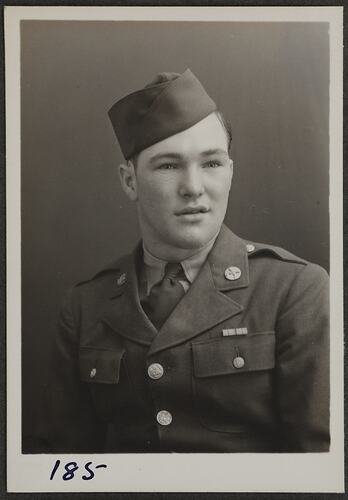 This is one of many portraits in an album of military and naval personnel who visited the Kodak Australasia Pty Ltd factory during World War II, 1939-1945.
