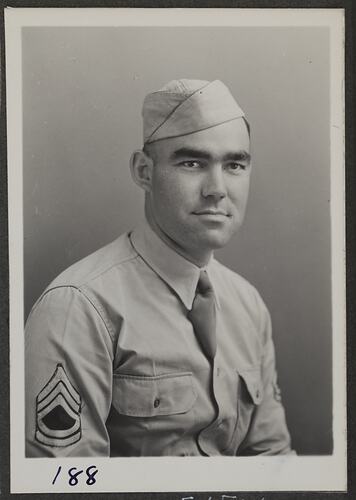 Photographic portrait of Technical Sergeant T.W. Williams on a visit to the Kodak factory at Abbotsford.