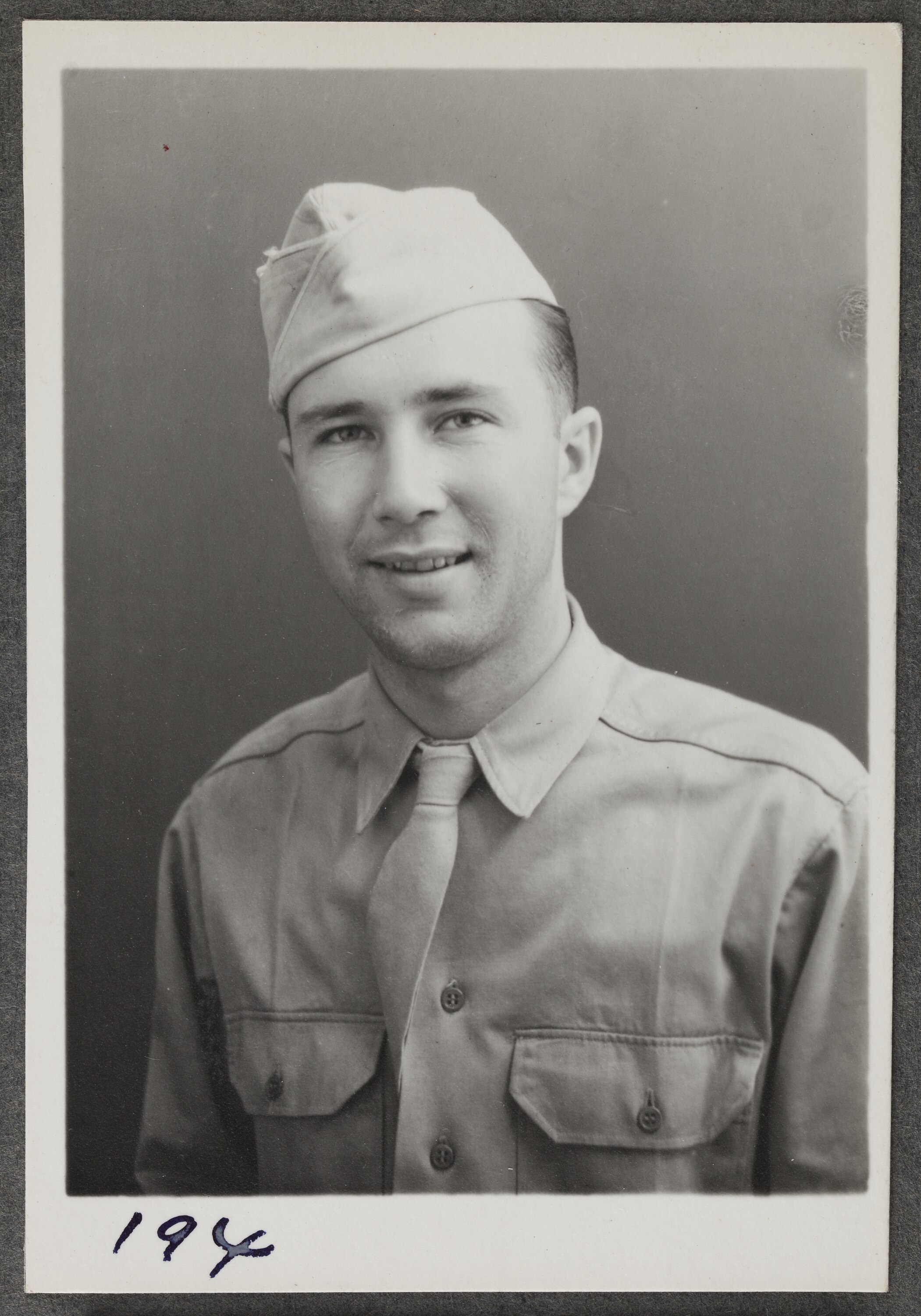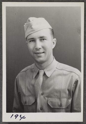 This is one of many portraits in an album of military and naval personnel who visited the Kodak Australasia Pty Ltd factory during World War II, 1939-1945.