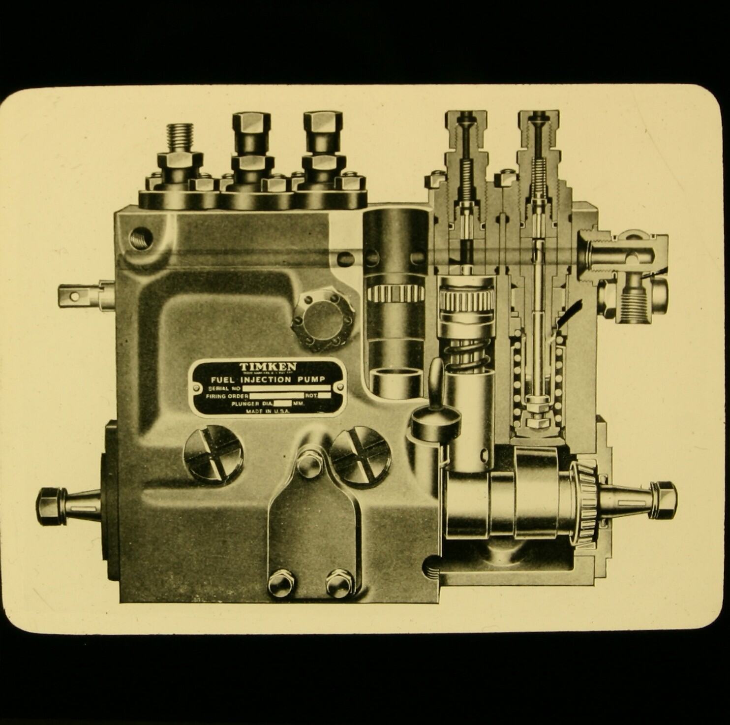 Cross-section illustration of a Timken fuel injection pump.