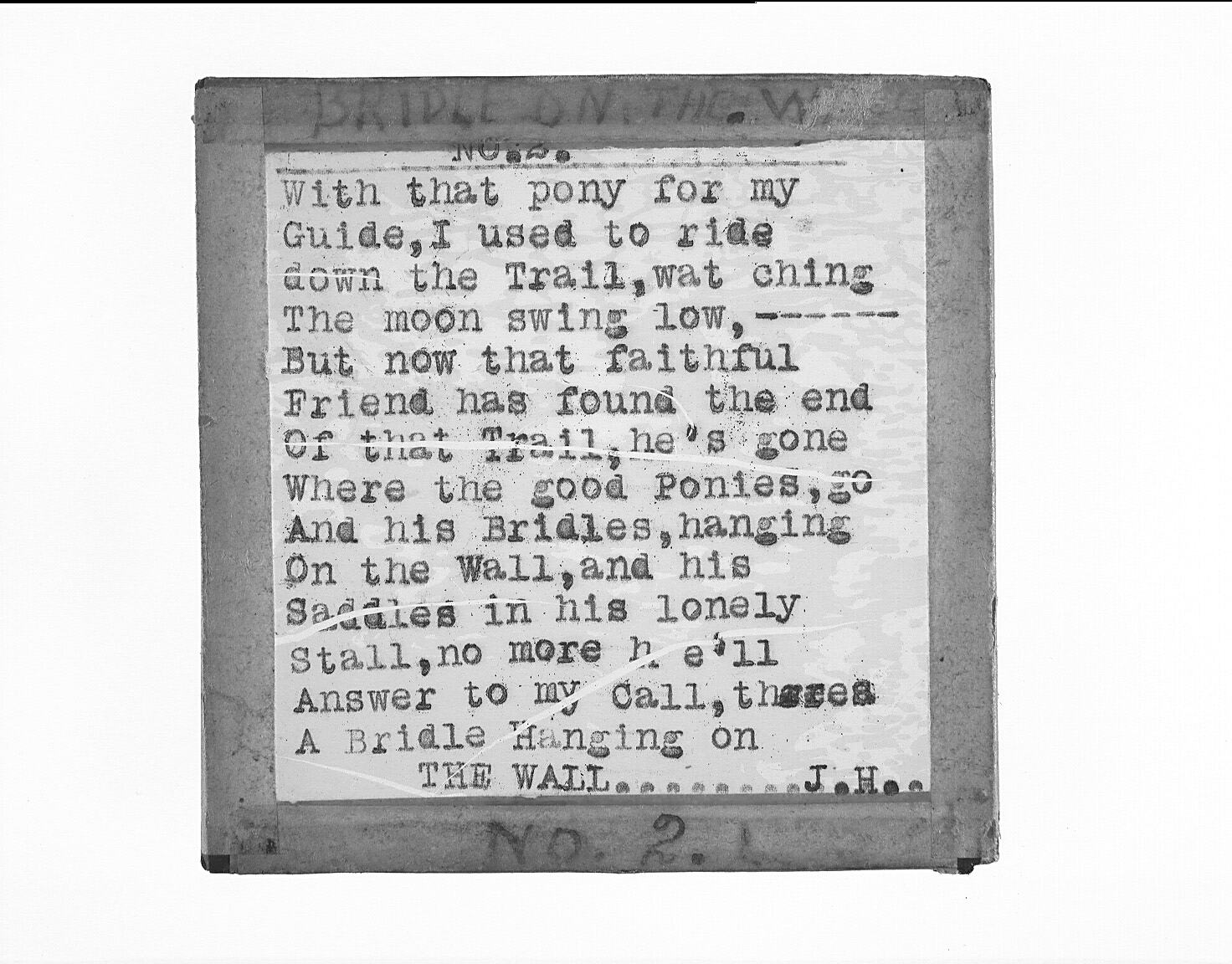 Lantern Slide with the song lyrics for 'Bridle on the Wall' Part 2.