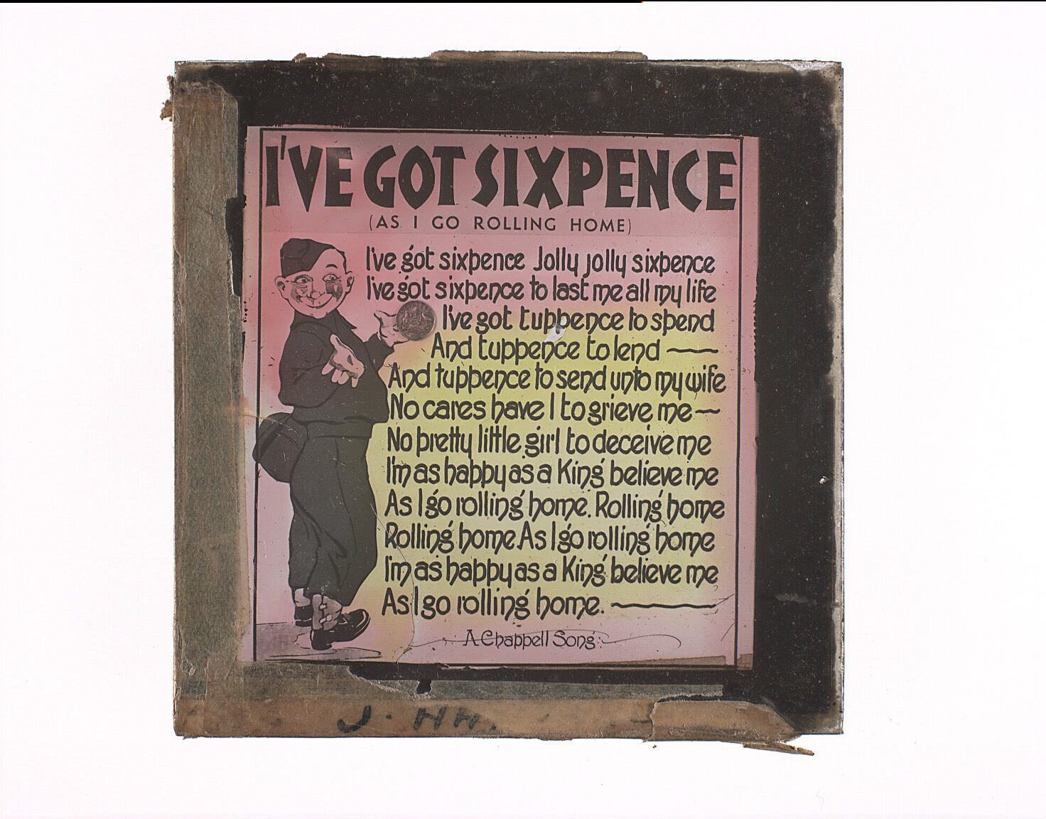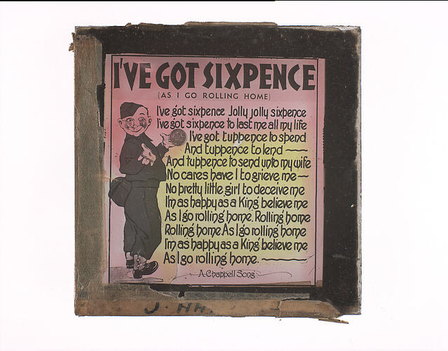 Lantern Slide with the song lyrics for 'I've Got Sixpence'. Published by Chappell.