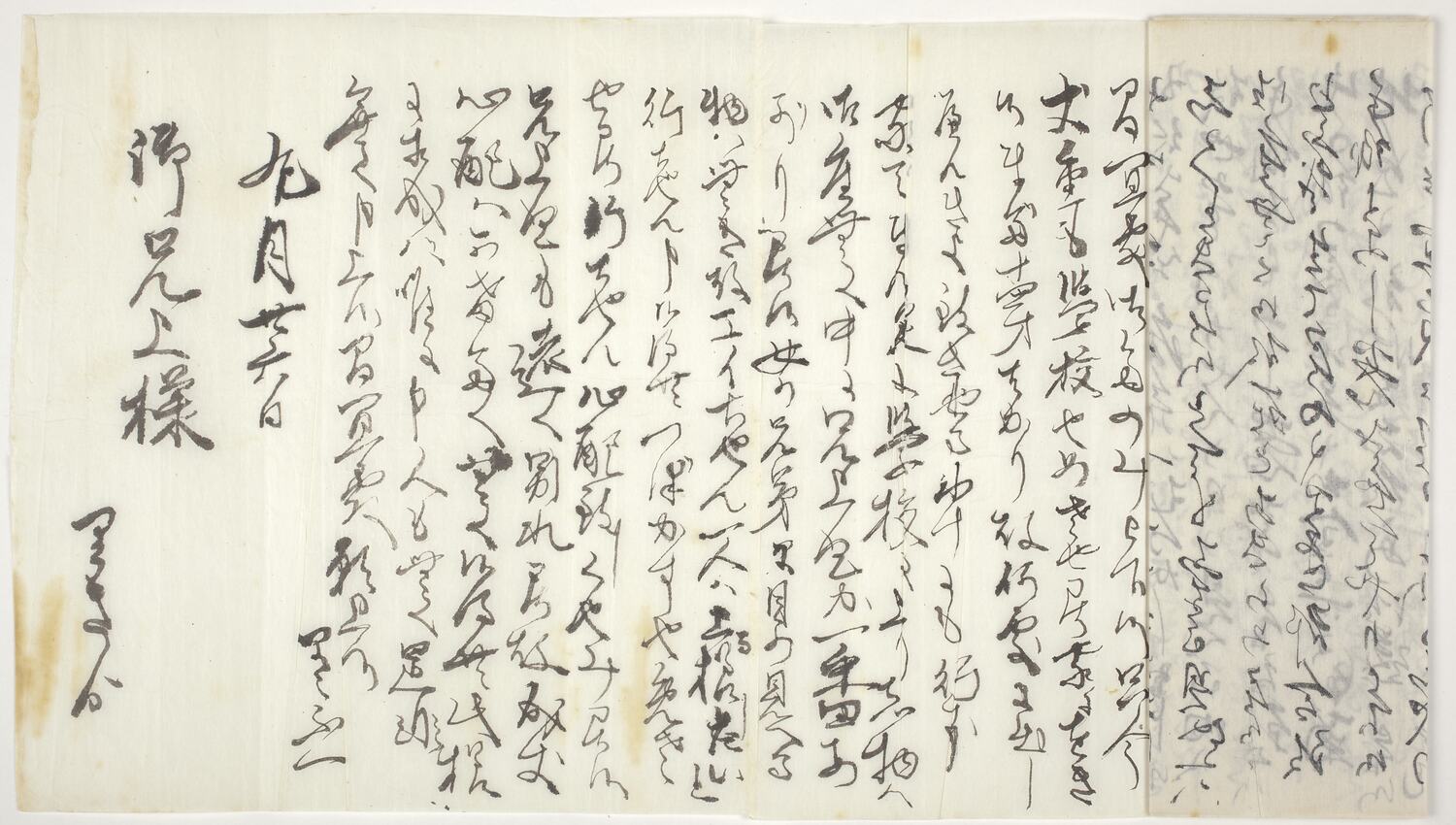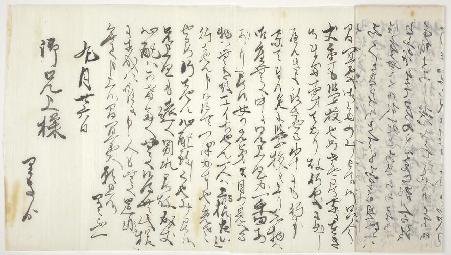 Letter addressed to Setsutaro Hasegawa from his siblings in Japan. Setsutaro migrated to Australia from Japan in 1897 at the age of 26, just four years before the introduction of the Immigration Restriction Act which severely limited migration to Australia from countries in Asia. He established a laundry business in Geelong and by 1911 he had married an Australian-born woman and had three children.
