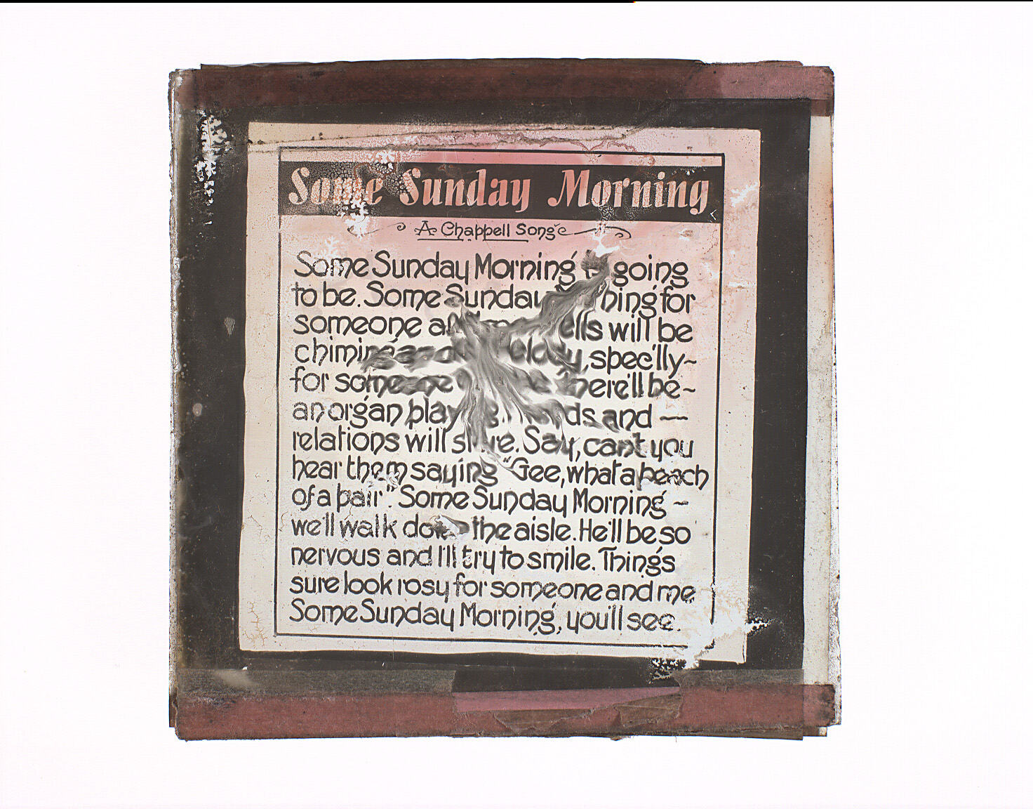 Lantern Slide with the song lyrics for 'Some Sunday Morning'. Published by Chappell.
