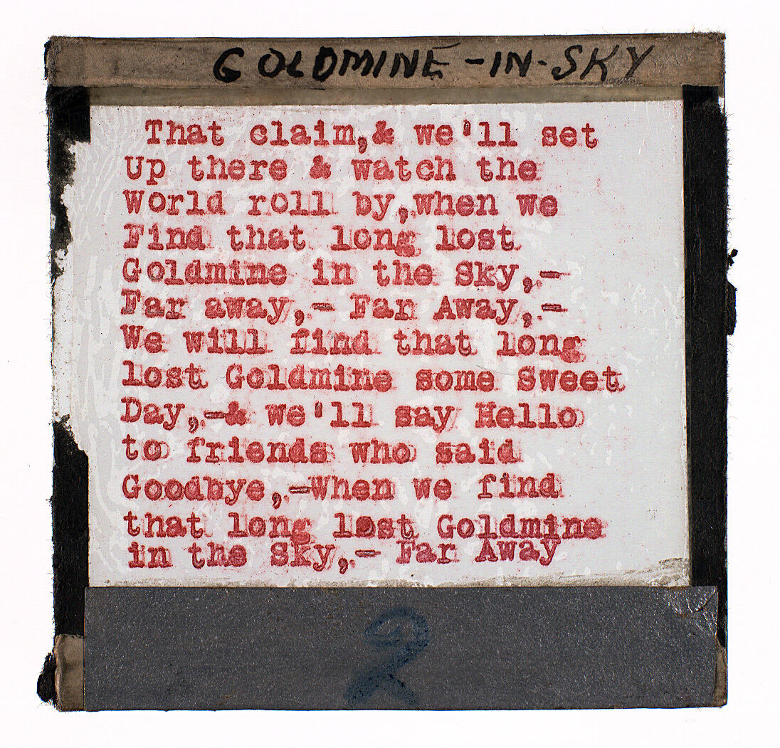 Lantern Slide with the song lyrics for 'Goldmine in the Sky' Part 2.