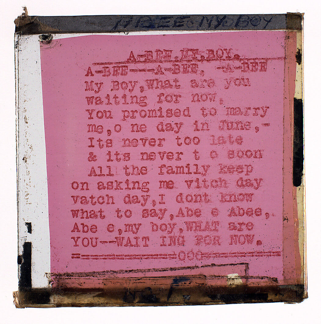 Lantern Slide with the song lyrics for 'A-Bee My Boy', Part 1.