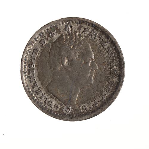 Bare head of the King facing right; around, GULIELMUS IIII D:G: BRITANNIAR: REX F:D: