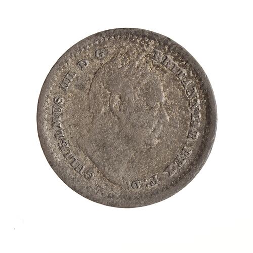 Bare head of the King facing right; around, GULIELMUS IIII D:G: BRITANNIAR: REX F:D: