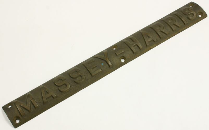 Moulded, obverse of name plate, "MASSEY-HARRIS".