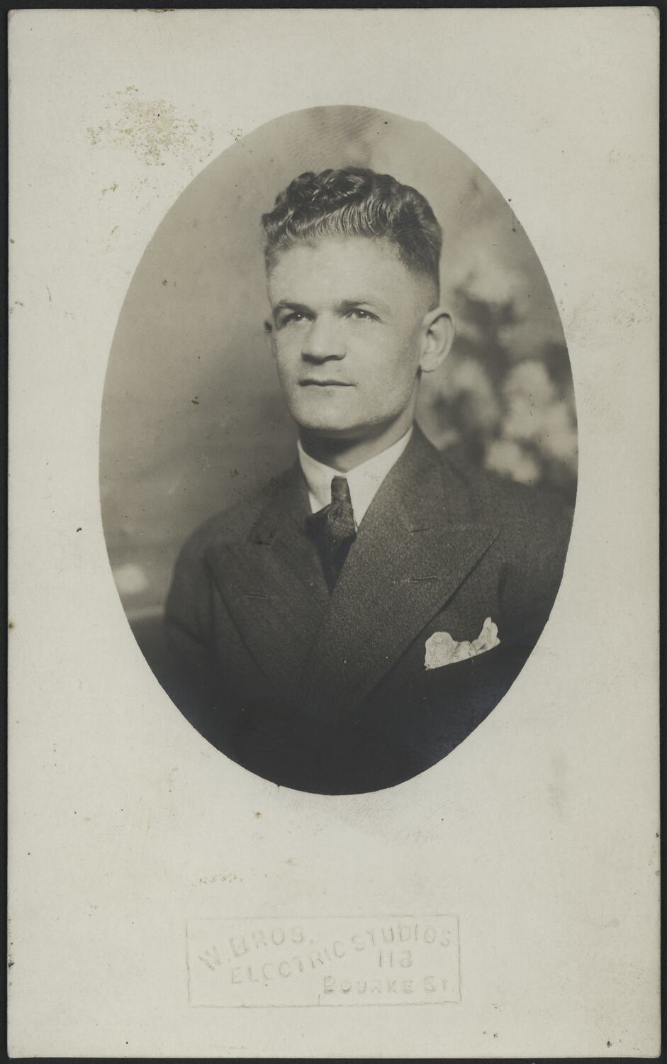 Black and white portrait photograph of Stanio Fancoff, taken in Bulgaria in the 1920s prior to his migration to Australia in 1929.