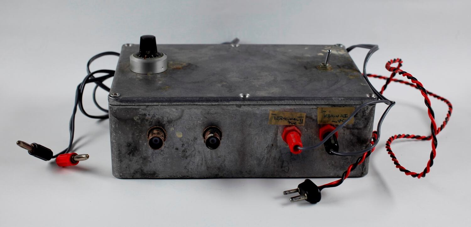 Avoidance conditioning equipment used in testing implanted cats to electrical stimuli, in the initial animal studies for the bionic ear research project, University of Melbourne, early 1970s.