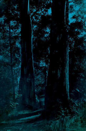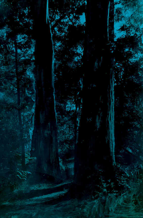 Hand coloured image of a path leading through the bush in the Badger Creek, Victoria area, photographed by A.J. Campbell.