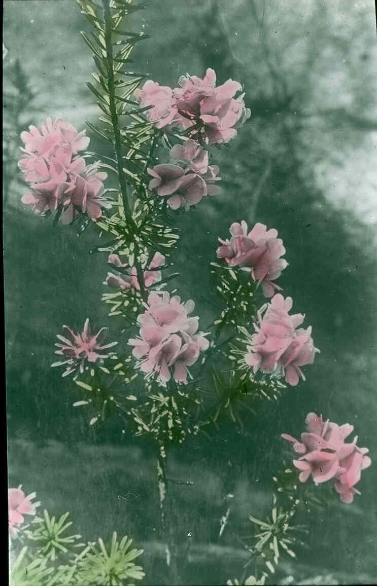 Colour image of the plant Pultenaea rosea in bloom in the Grampians National Park of Victoria, probably photographed by A.J. Campbell.