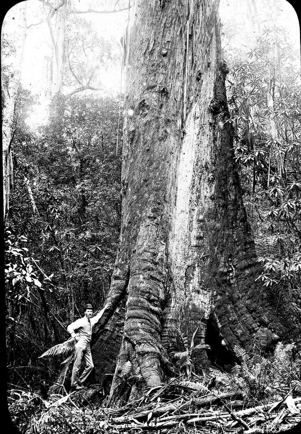 In the nineteenth century there was a general fascination for large ancient trees around the world. Many were carefully measured before being cut down for use as a construction material, however some survived to become curiosities for tourists and naturalists alike with The Baron being one of them. This specimen of Eucalyptus regnans originally said to measured 160 metres tall and was named after Baron Ferdinand von Mueller, first director of Victoria's Royal Botanic Gardens. However, the tree was remeasured twice more and it was found to be significantly shorter at just under 67 meters.