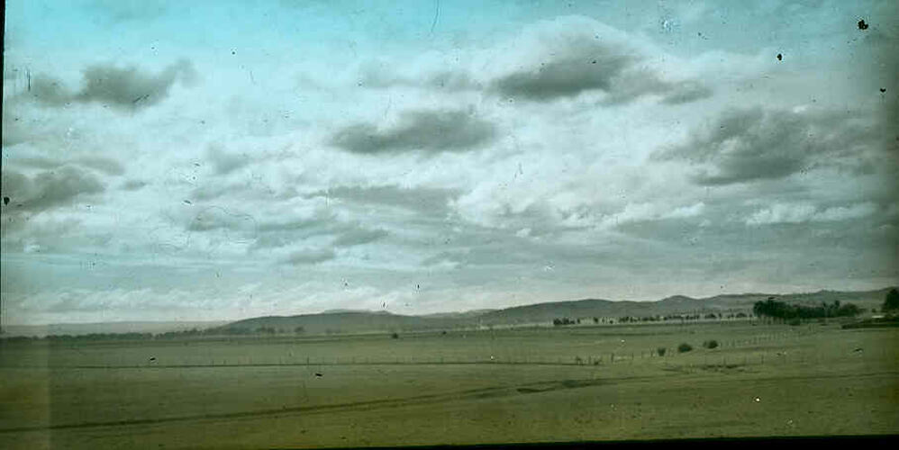 Colour image of the sanctuary taken from Coburns Road, Toolern Vale, looking south across the plains to the You Yangs and Mt Cottrell, photographed by A.G. Campbell, son of A.J. Campbell.