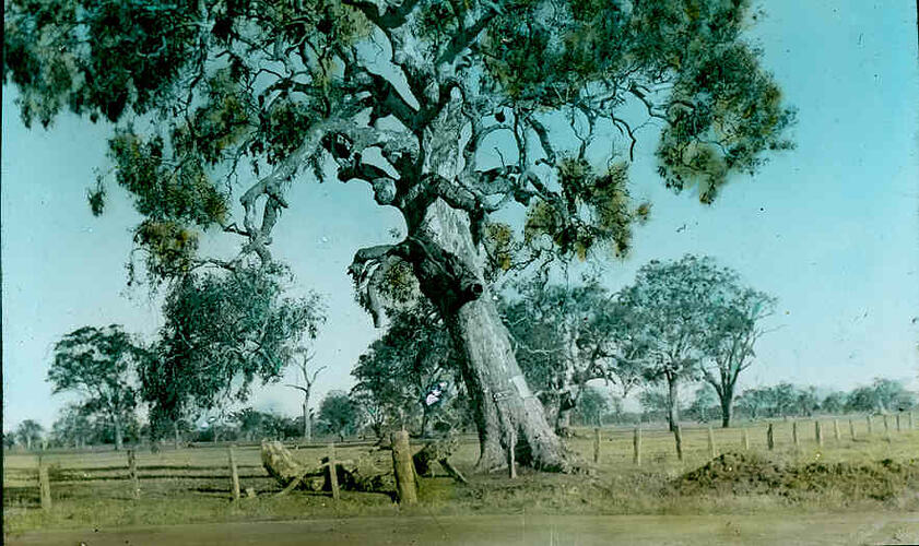 Colour image of an old red gum tree in the Dandenongs, photographed by A.G. Campbell, son of A.J. Campbell.