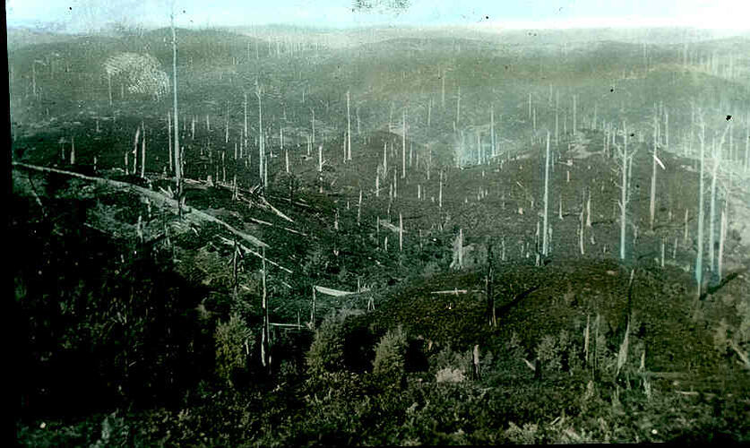 Colour image of the view over Strzelecki Ranges from Grand Ridge Road, photographed by W. Burgess.
