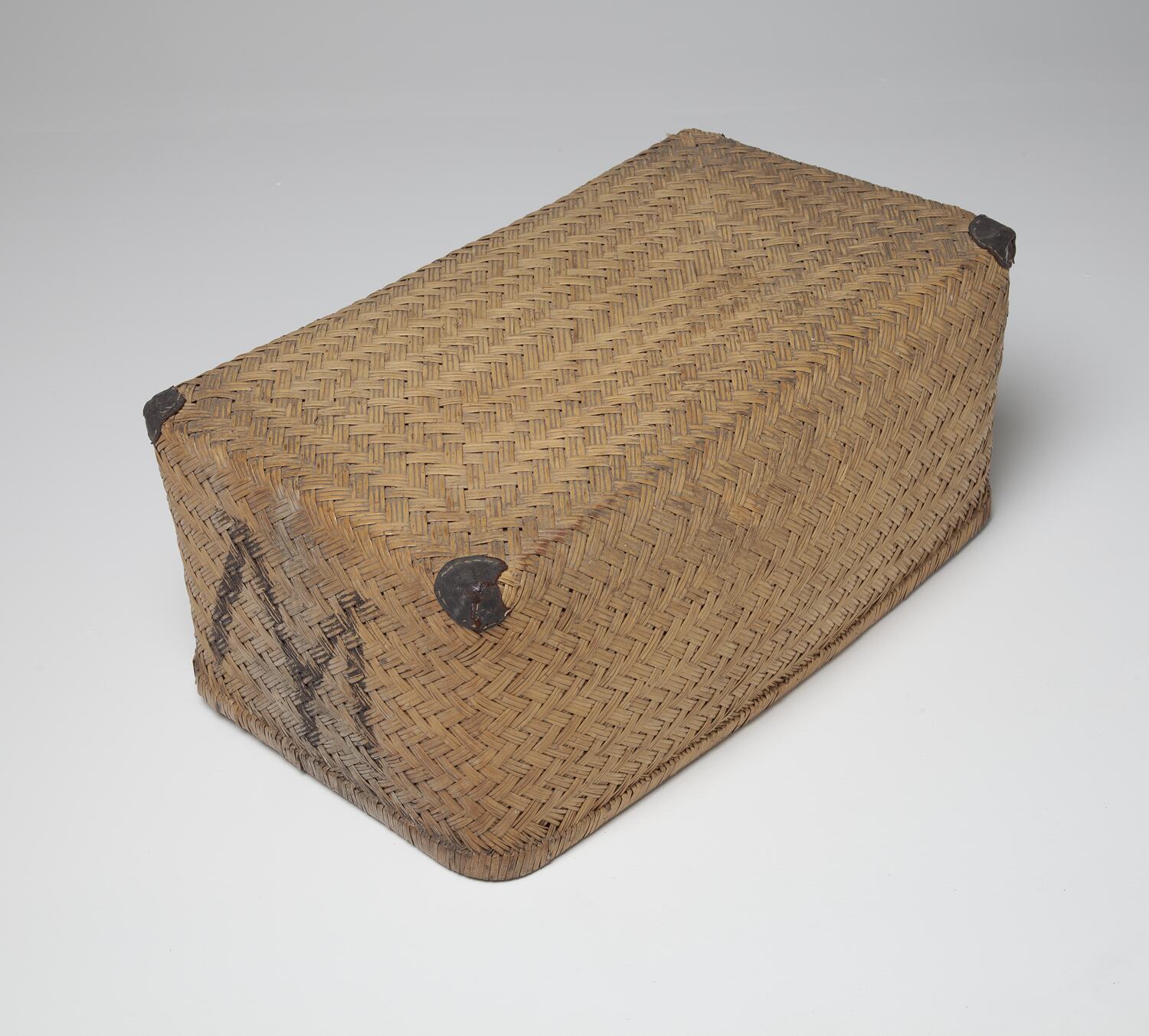 Two-part brown wicker travel basket, which was brought to Australia by Margaret Henderson Miller (1825-1925), when she migrated with her husband James (1815-1892), daughter Martha (1853-1930) and family from Scotland in 1872. The basket has been passed down through the Miller family generations to James and Margaret Miller's great grandson Mick Miller.