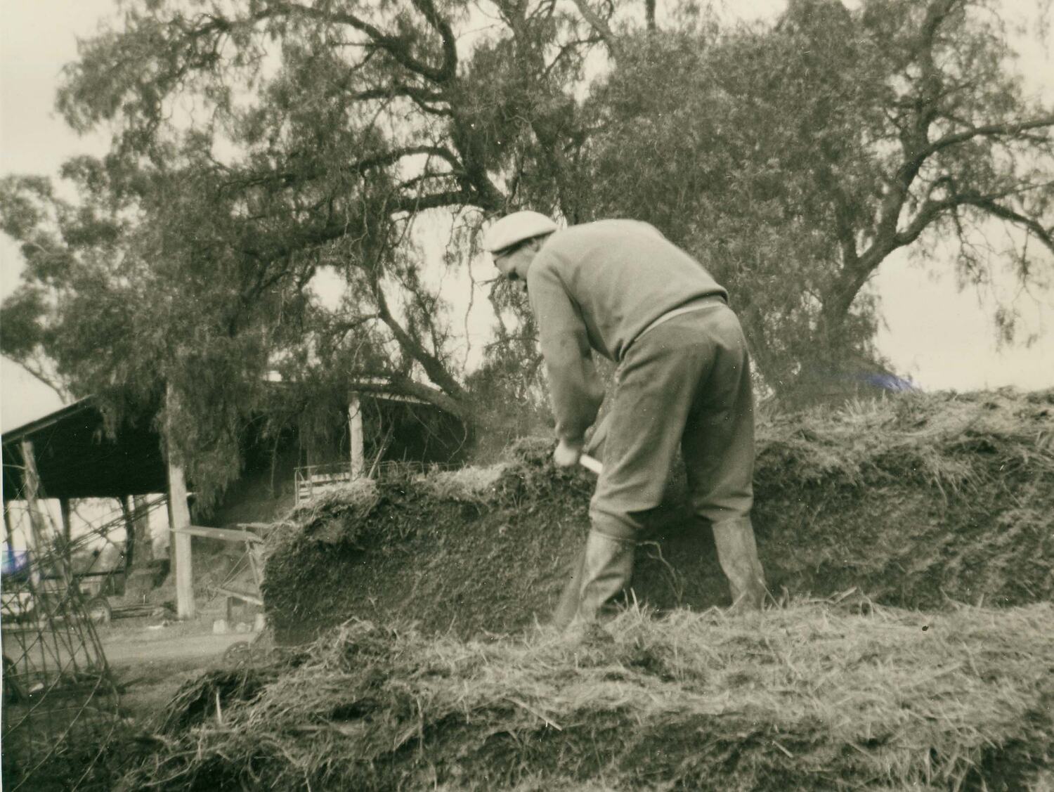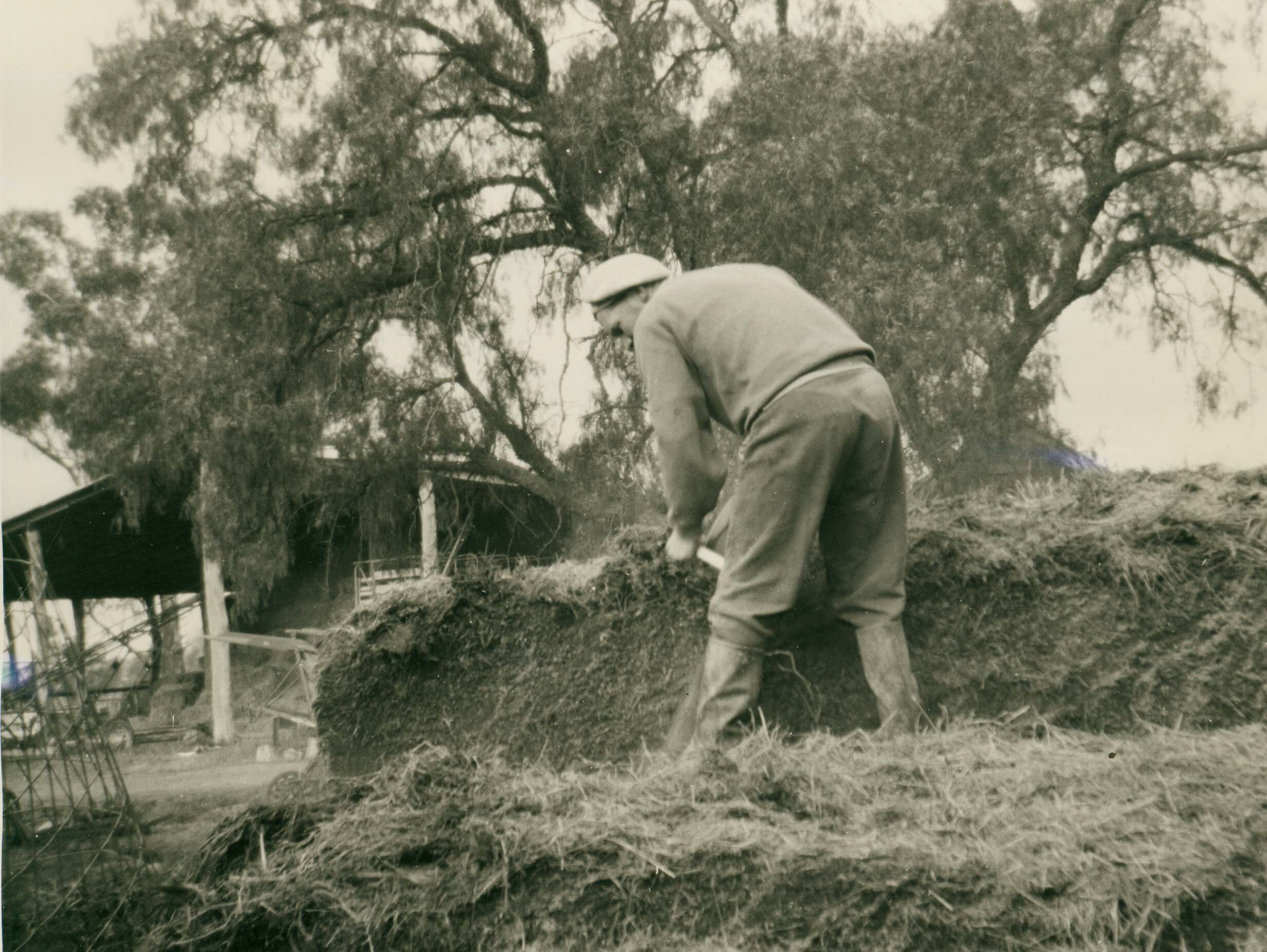 Photograph of man cutting silage.